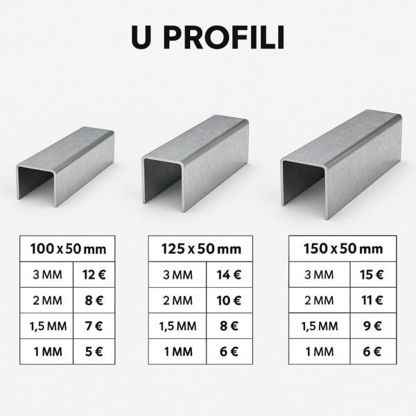 Naši U profili izrađeni od pocinčanog lima predstavljaju idealno rješenje za razne konstrukcijske i montažne sustave. Proizvedeni u Hrvatskoj na suvremenim strojevima, profili jamče visoku preciznost, nosivost i otpornost na vanjske uvjete. Dostupni su u različitim dimenzijama, s mogućnošću prilagodbe prema vašim potrebama.